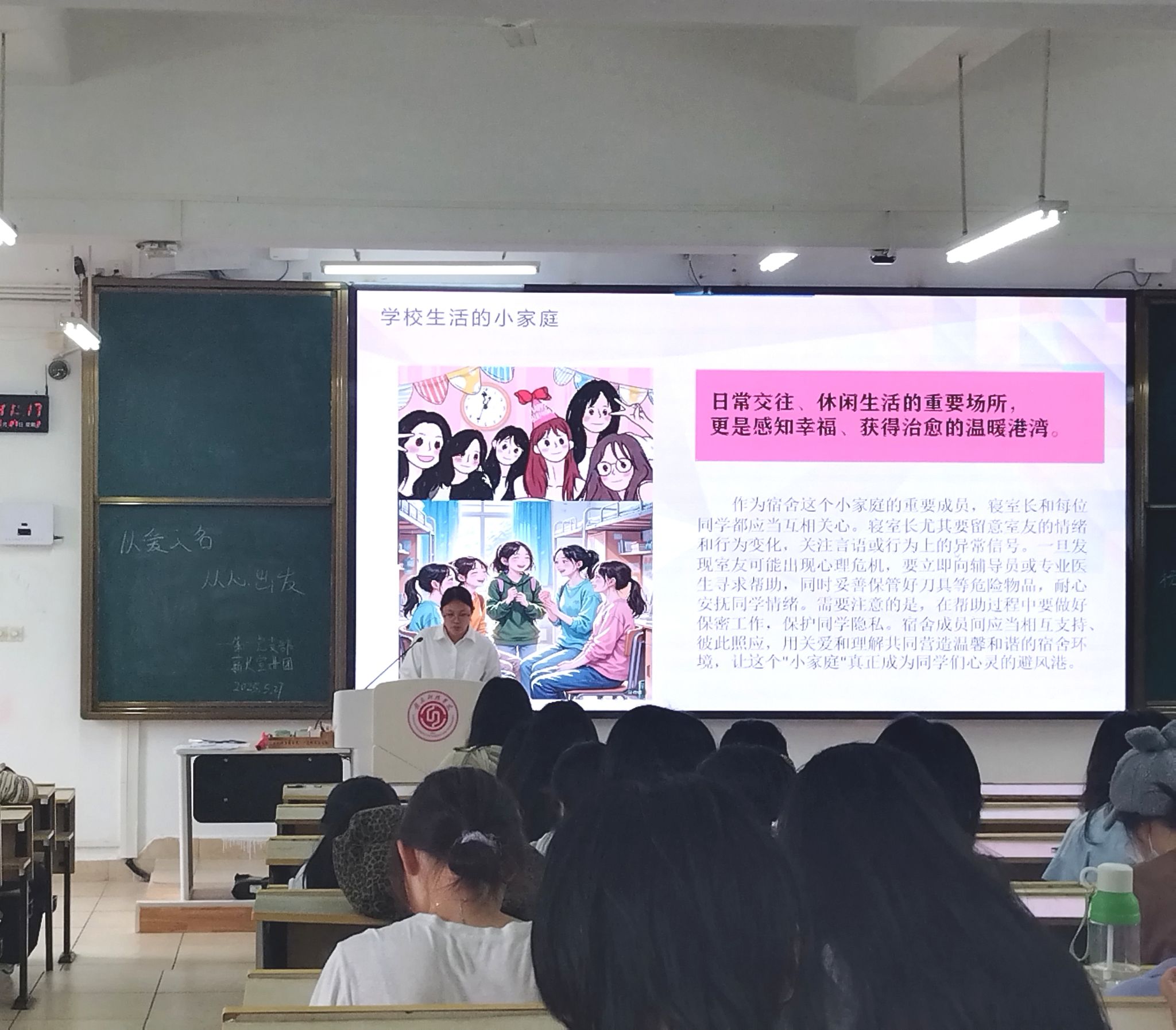 活动伊始,一场“缺点开关”互动游戏点燃现场氛围。同学们闭眼沉思,将自身“不完美”写在手心,并挖掘其背后的“隐藏礼物”。敏感”让我更懂得倾听他人;“焦虑”让我做足更充分的准备;“自卑”让我保持谦逊前行……参与者们发现,所谓缺点实则是成长的另一面镜子。宣讲人向大家分享了尼克·胡哲和华坪女高女孩的励志故事,深刻诠释“不完美”也能成就精彩人生。无四肢的尼克用幽默征服世界,山区女孩以知识冲破枷锁,生动案例让在场同学动容。面对大学生心理健康的严峻现状,宣讲人援引《中国国民心理健康报告》数据指出:学业压力、家庭沟通缺失等因素正加剧青年心理风险。“求助是强者的选择”,活动详细介绍了校心理咨询中心、危机热线等专业渠道,以及宿舍“小家庭”的非专业帮助。宣讲人呼吁寝室长们关注室友异常行为,用“保密+陪伴+及时报告”三步法守护彼此。