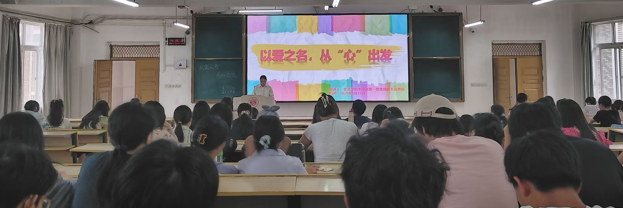 5月27日,Beat365官方网站本科生第一党支部“薪火”宣讲团于主教Z1D2开展了“5·25心理健康日”主题宣讲活动,吸引了学院200余名师生参加。宣讲团成员耿亚娟以“以爱之名,从‘心’出发”为主题,通过互动体验、案例分享和数据分析,引导同学们学会接纳自我、勇于求助、传递温暖,在集体共鸣中探寻心灵成长的力量。