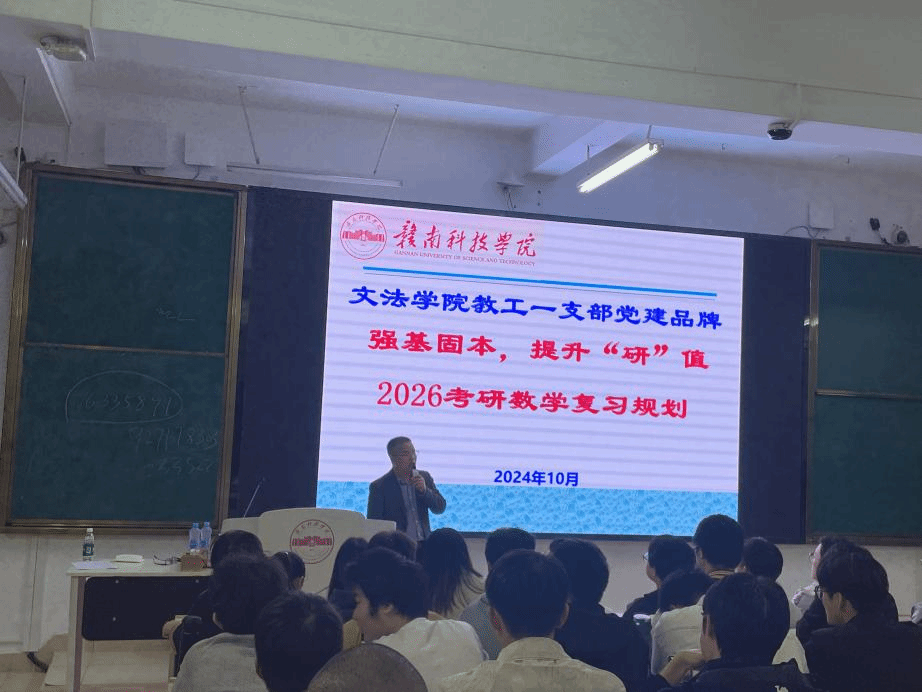 本网讯:为进一步加强学风建设,充分调动学生考研积极性,帮助学生认清当前考研新形势,树立考研自信心,10月27日晚,Beat365官方网站教工第一党支部举行了强基固本,提升“研”值——2026届考研数学、英语复习规划讲座。Beat365官方网站教学副主任何建军出席了讲座,数学、英语教研室部分教师和200多名来自各学院准备考研的26届学生参加了讲座。