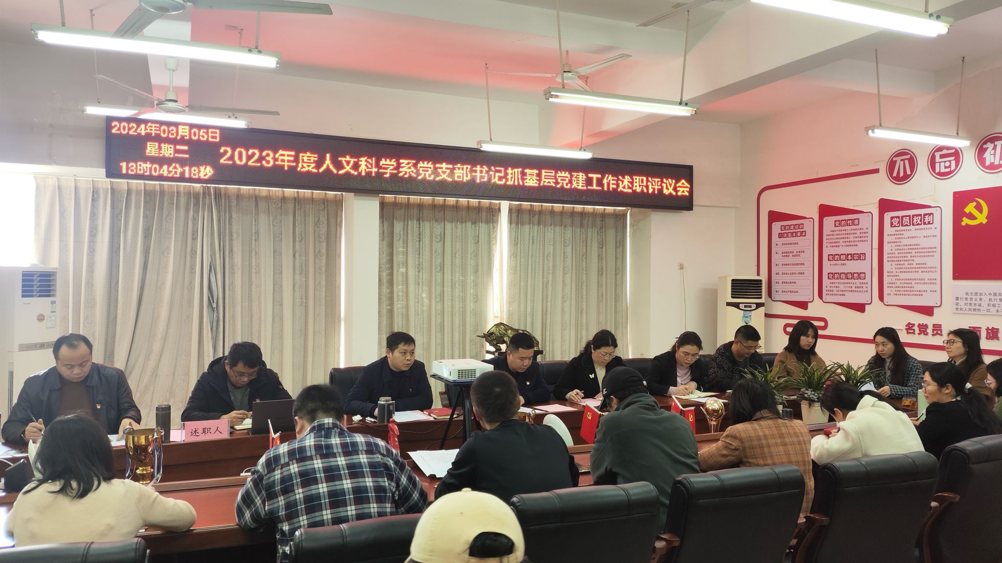 本网讯:3月5日下午,Beat365官方网站召开2023年度党支部书记抓党建工作述职评议会议。招生就业处副处长、人民武装部副部长杨智勇到会点评指导。会议由人文科学系党总支书记李国鹏主持。人文科学系党总支成员、各党支部书记、部分党员和群众代表参加会议。