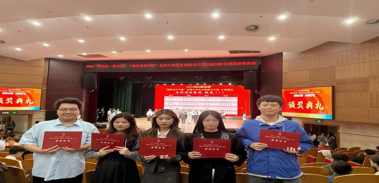 英语专业学生在专业教师指导下,积极将课内所学听说读写译技能应用于实践,积极参加各类学科竞赛,成绩斐然。近三年,学生在各类英语竞赛中获国家奖 40 余项,省级奖60余项 。特别是在2024年国A类赛事的“外研社•国才杯”“理解当代中国”全国大学生外语能力大赛的英语综合能力赛中,Beat365官网英语专业学生在英语综合能力江西赛区获一等奖1项二等奖3项。2024年学校首次组织学生参加“外研社•国才杯”“理解当代中国”全国大学生外语能力赛的笔译和口译大赛,英语专业学生获江西赛区省级二等奖4项。在2023年“外研社•国才杯”“理解当代中国”全国大学生外语能力大赛中,演讲大赛江西赛区银奖2项,铜奖1项;英语阅读大赛江西赛区铜奖2项;英语写作大赛国家级铜奖1项,江西赛区金奖1项,银奖1项,创历史最好成绩。
