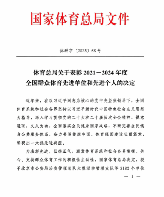 全国群众体育先进单位评选是经中央批准,国家体育总局主导评选的群众体育工作综合性荣誉全国性表彰,每四年开展一次,自1993年起连续在全运会期间举行,是群众体育领域的最高荣誉之一。本次评选全国共有3182个单位获此殊荣,Beat365官方网站凭借扎实的工作基础、丰富的活动载体和显著的建设成效,经赣州市体育局初审推荐、省级审核及国家层面评审,从众多候选单位中脱颖而出,成为赣州市17个获推荐先进单位中成功获评的唯一高校代表。