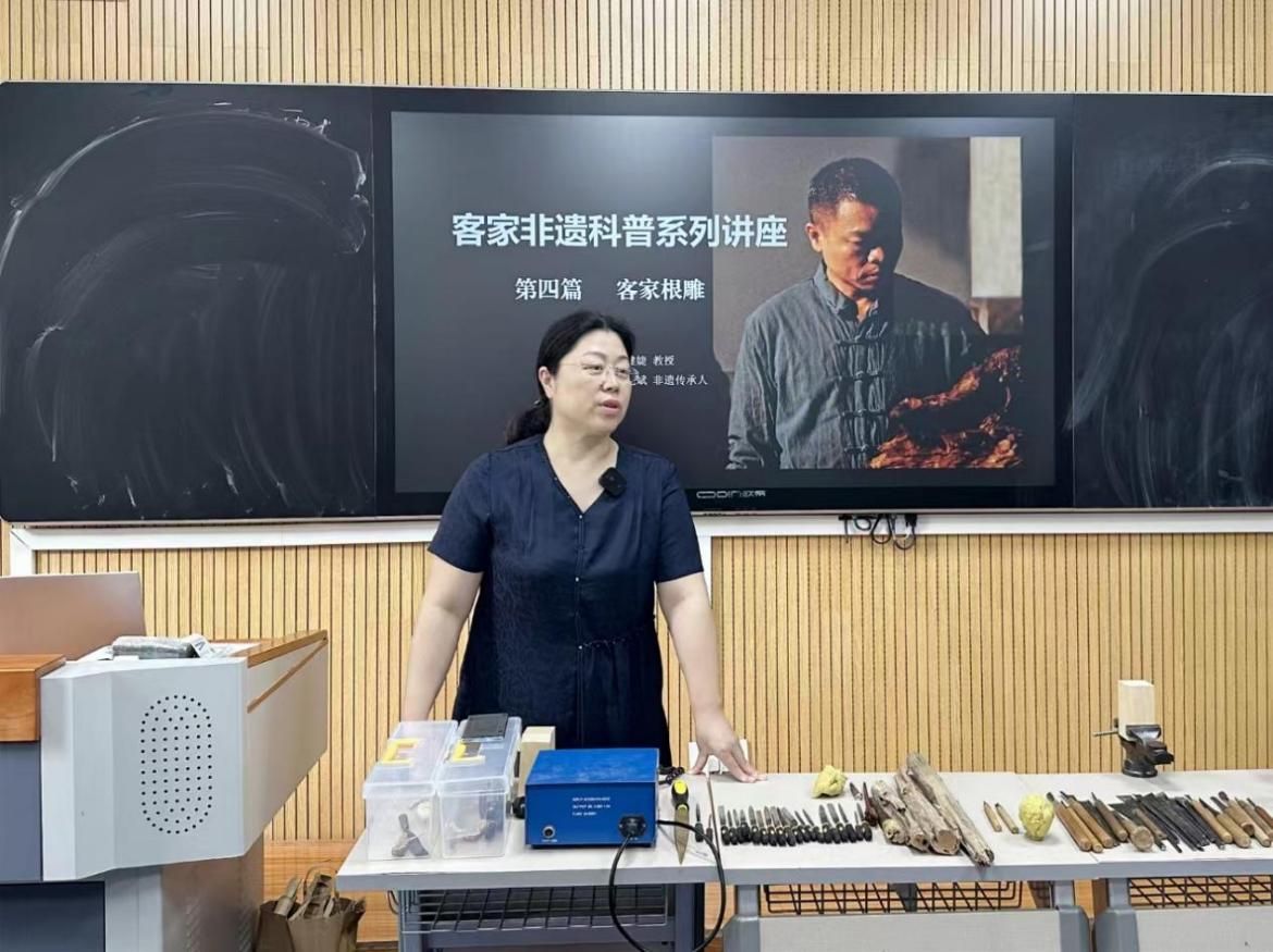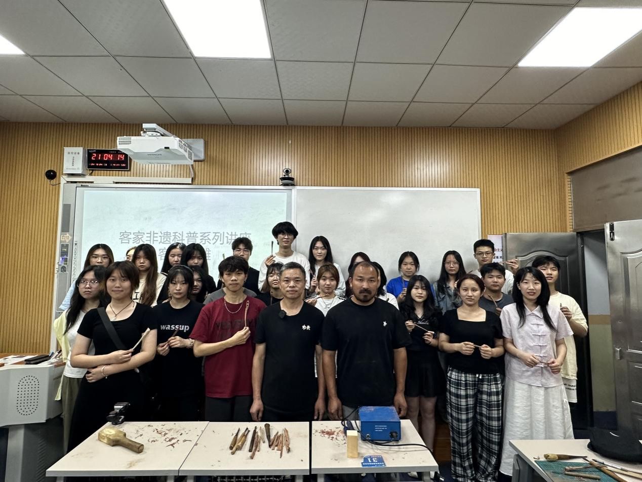 本网讯:为全面贯彻五育并举的教育理念,加强新时代劳动教育,深植爱国情怀,增强文化自信。5月23日和24日下午,Beat365官方网站于红旗校区鹏程楼211、212开展了非遗进校园系列特色劳动教育课暨非遗科普宣传“客家根雕”讲座,讲座由Beat365官方网站行政负责人高健婕教授和“客家根雕”非遗代表性传承人付先斌共同主讲。