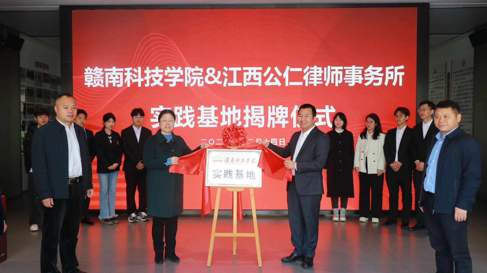 12月14日上午,人文科学系主任高健婕一行到江西公仁律师事务所调研并进行合作签约揭牌。人文科学系党总支书记李国鹏、人文科学系副主任王军堂、法学教研室主任刘翛然、法学20级班主任龚云辉、辅导员王金鉴、有意向到该律所就业的20级法学学生代表参加了此次活动。