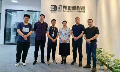 江西幻界影视科技有限公司总经理曹哲铭、技术总监严玉龙热情接待了走访调研人员。幻界影视科技有限公司主要从事虚拟现实技术下的大型直播间搭建解决方案,拥有自主知识产权的图像处理技术和相关配套设备。调研中,技术总监严玉龙详细介绍了企业技术特色,并现场展示了其技术实力;总经理曹哲铭详细介绍了企业发展现状和未来发展规划。