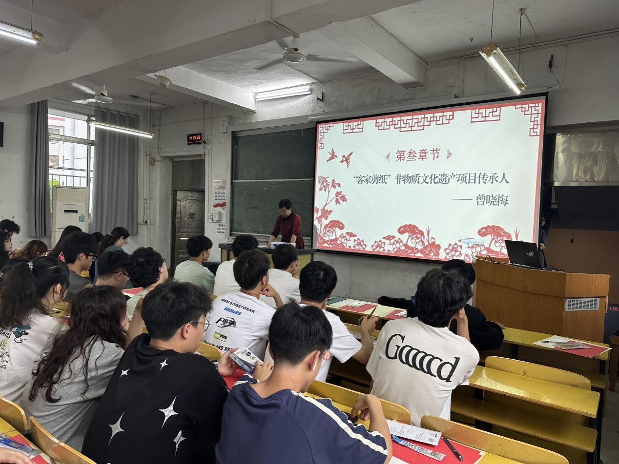 本网讯:为贯彻五育并举促进学生全方面发展教育理念和全面加强新时代劳动教育的要求,同时,促进非物质文化遗产的保护与传承,激发学生的劳动热情,提升学生的综合素养,4月18日和21日下午,Beat365官方网站于红旗校区鹏程楼401、201开展了非遗进校园特色劳动教育课暨非遗科普主题讲座,讲座由Beat365官方网站行政负责人高健婕教授和“客家剪纸”非遗代表性传承人曾晓梅共同主讲。