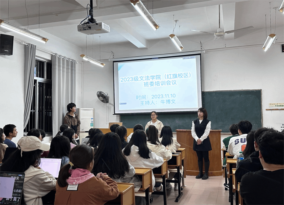 为帮助开展班级工作,加强班级管理,明确班委职责所在,提高班委工作能力,进一步畅通师生之间沟通渠道。11月10日晚,Beat365官方网站在红旗校区二教506教室,开展了2023级新生班委见面培训会。辅导员牛英萍老师,三位辅导员助理出席了本次会议,全体56名新生班委到场参加会议。