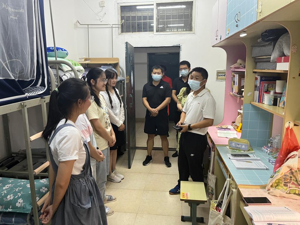何锦龙在走访学生宿舍中,叮嘱同学们注意个人防护和公共卫生,加强宿舍开窗通风,增强体育锻炼,保持健康的体魄和良好的精神状态,同时希望大家严格遵守学校疫情防控要求,做好疫情防控常态化形势下的自我管理和自我监督。