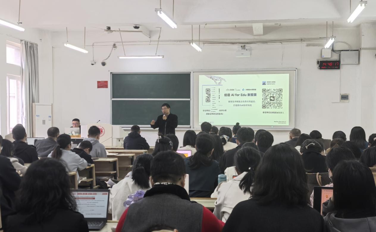 本网讯:为主动应对人工智能技术浪潮对高等教育的深刻影响,提升教师运用AI工具辅助教学的能力,11月11日下午本院在主楼Z114成功举办了面向全院专任教师的AI教学应用辅导讲座。本次讲座特邀智慧树网资深培训专家进行专题讲解与实操演示,为全院教师来了一场内容丰富、注重实效的AI教学“启蒙课”。