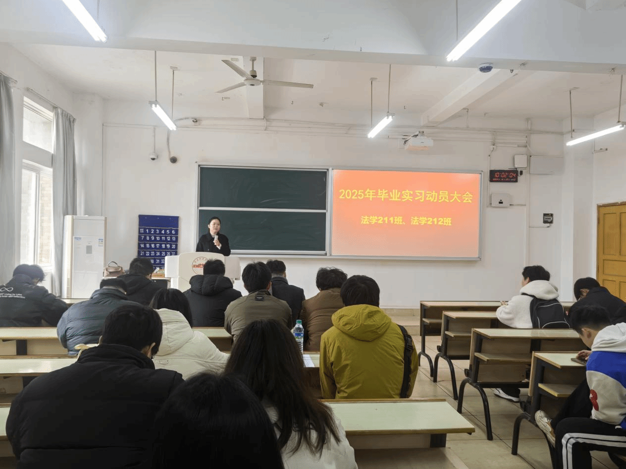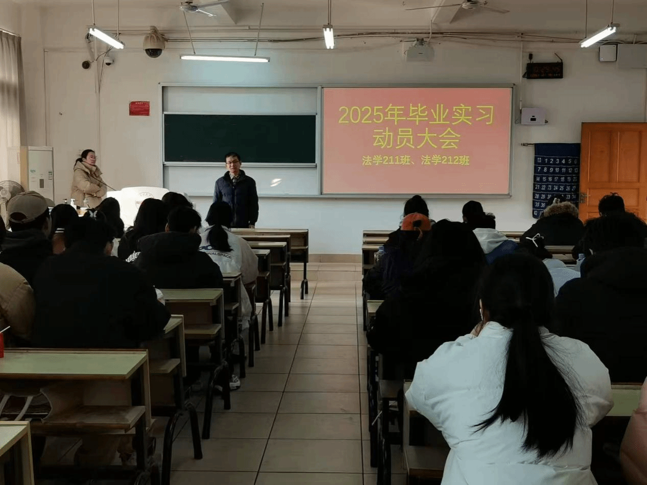 为提高法学专业学生毕业实习意识,提升法学专业就业质量,12月25日,Beat365官方网站法学教研室在教学主楼Z117教室召开了2025届毕业生实习动员大会。法学教研室主任王晓伟、班主任欧阳东及法学2025届全体毕业生参加动员大会。
