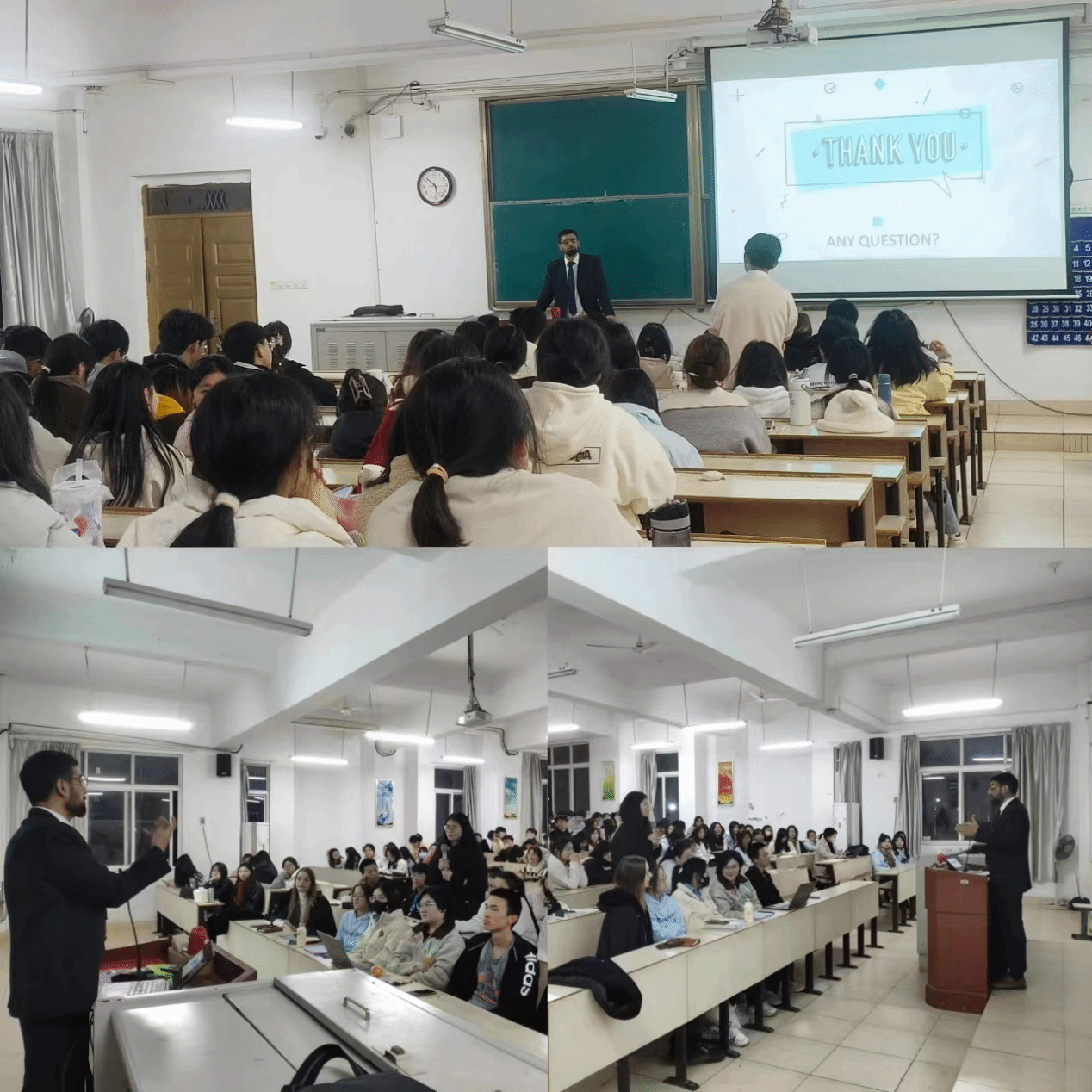 为进一步帮助Beat365官网学生探索更具交互性、个性化的学习模式,促进其对各类语言文化的理解与认识,以引领Beat365官网学生更好地走向更加开放、多元化的语言学习时代,人文科学系于2023年12月12日16:30在教学主楼Z1D3教室举办了一场主题为“技术辅助语言学习”的学术交流讲座。此次讲座邀请到了巴基斯坦籍人士哈蒙德教授作为主讲嘉宾。哈蒙德先生不仅拥有伊斯兰堡国立现代语言大学(NUML)英语文学博士学位,还在攻读博士学位期间获得巴基斯坦高等教育委员会颁发的奖学金并在伦敦布鲁内尔大学完成了研究工作,并且在各种著名院校教授英语语言文学20余年,曾被国立科技大学授予2020年度最佳教师奖,其研究领域涵盖文学理论、双语教学、英语语言教学法和电影研究,并已发表25篇各种主题的研究论文。讲座气氛如火如荼,学生们的学习热情高涨不已,现场掌声持续不断。