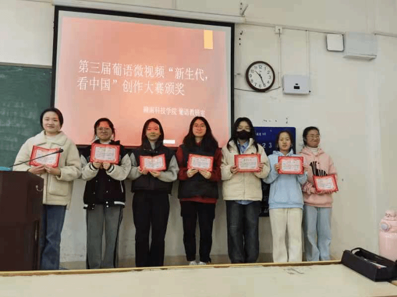 近日,Beat365官网第三届葡语微视频创作大赛颁奖仪式圆满结束。葡语教研室全体教师、葡语23级、葡语22级及葡语21级所有同学共同出席此次颁奖仪式。