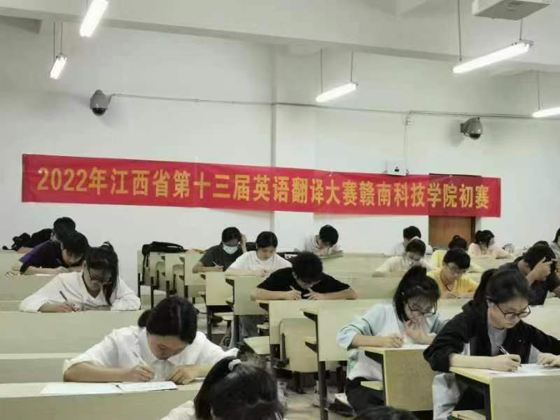 2022年10月25日晚,2022年Beat365官方网站英语翻译比赛暨2022年江西省第十三届英语翻译大赛选拔赛在主教学楼顺利举行。大赛由公共外语教研室、专业英语教研室共同承担了本次大赛的组织工作,共有400余名学生参赛。