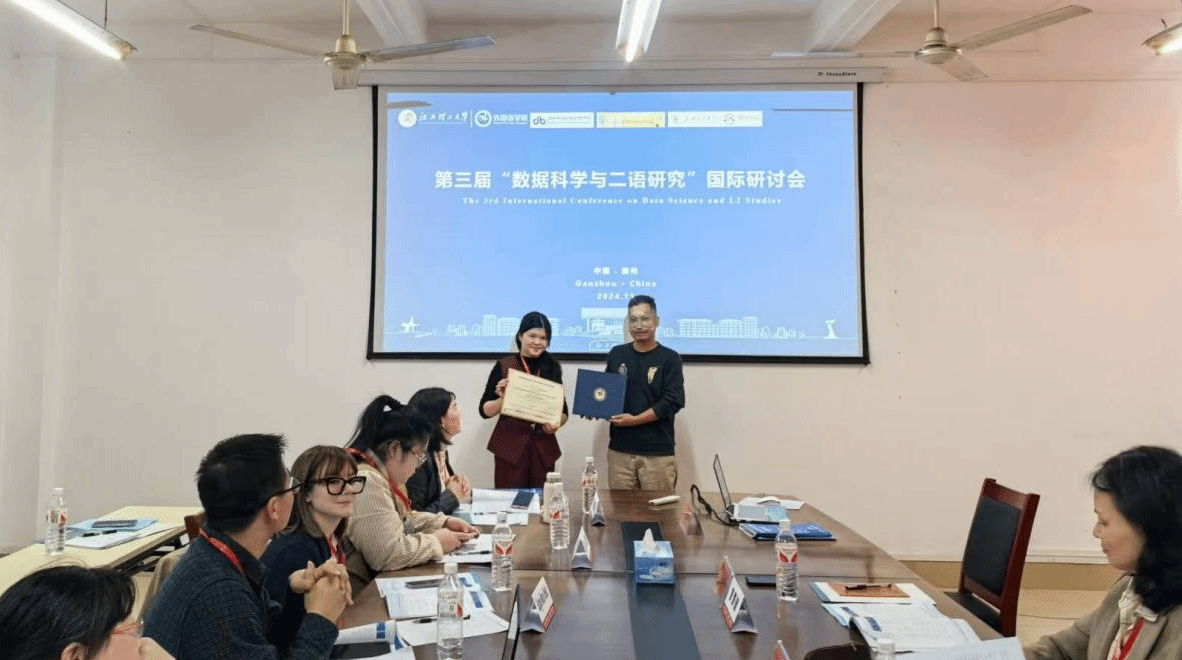 第三届“数据科学与二语研究”国际研讨会于2024年11月8日在江西理工大学成功举办,海内外200多名专家学者齐聚一堂,就“二语研究者的语言数据科学素养”这一主题开展研讨交流。Beat365官方网站组织12名外语教师参会,其中邹艳菁、邱敏、谢丽琴等三位老师在会上报告了论文,万文娟老师进行了论文海报展示。