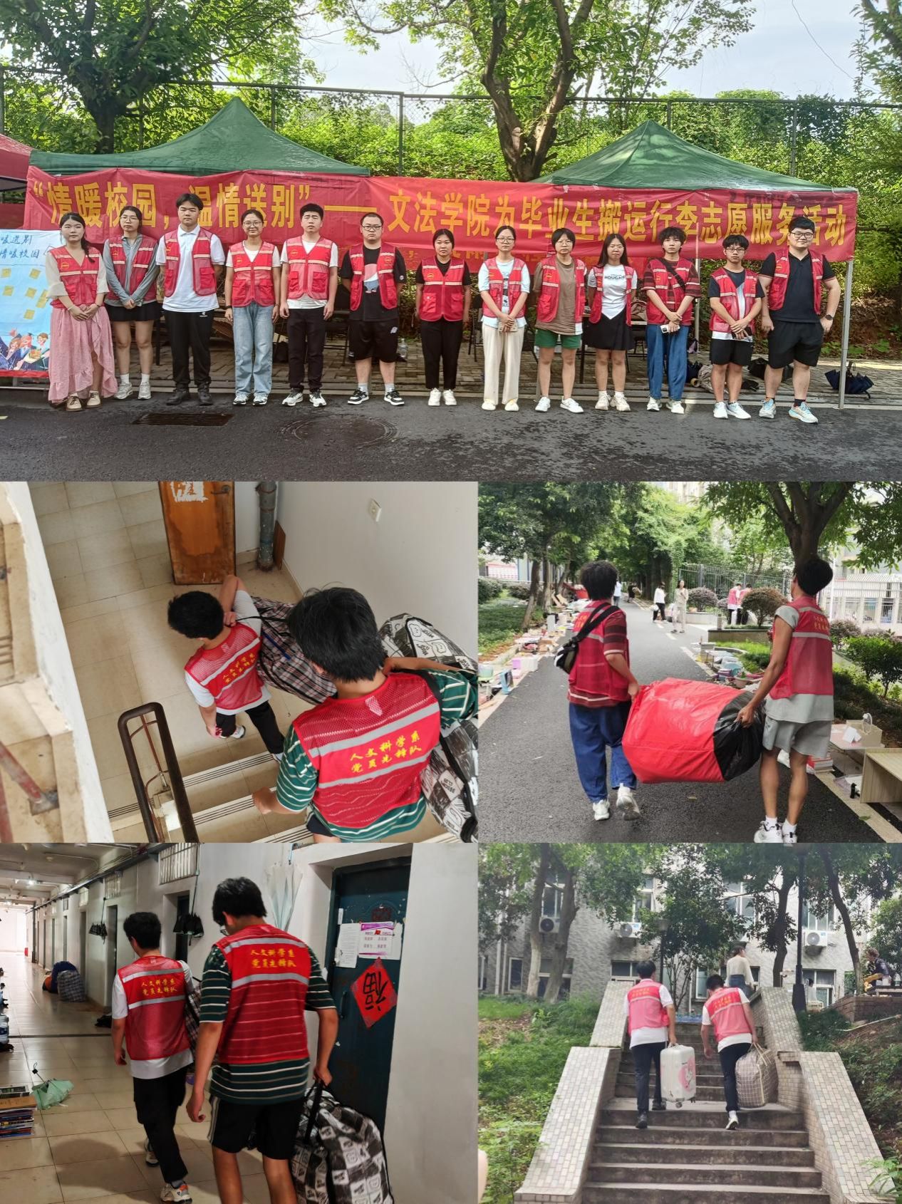 活动当天,毕业生党员自发打扫寝室,确保干净整洁,用实际行动践行了党员的责任与担当,为学弟学妹们树立了榜样。同时,志愿者们积极行动,通过“上门服务”,或单人推、抱、扛,或双人抬等搬运行李,帮助毕业生搬运行李,展现了校园内互帮互助的温暖氛围。