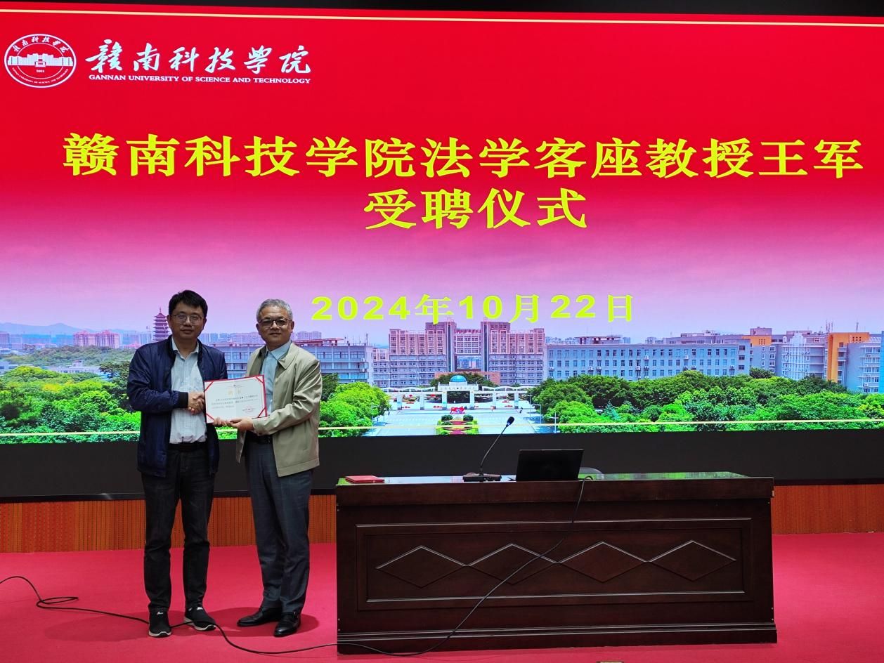 讲座后,举行了Beat365官方网站法学客座教授受聘仪式,Beat365官方网站教学主任何建军为新聘任的客座教授王军颁发聘书。