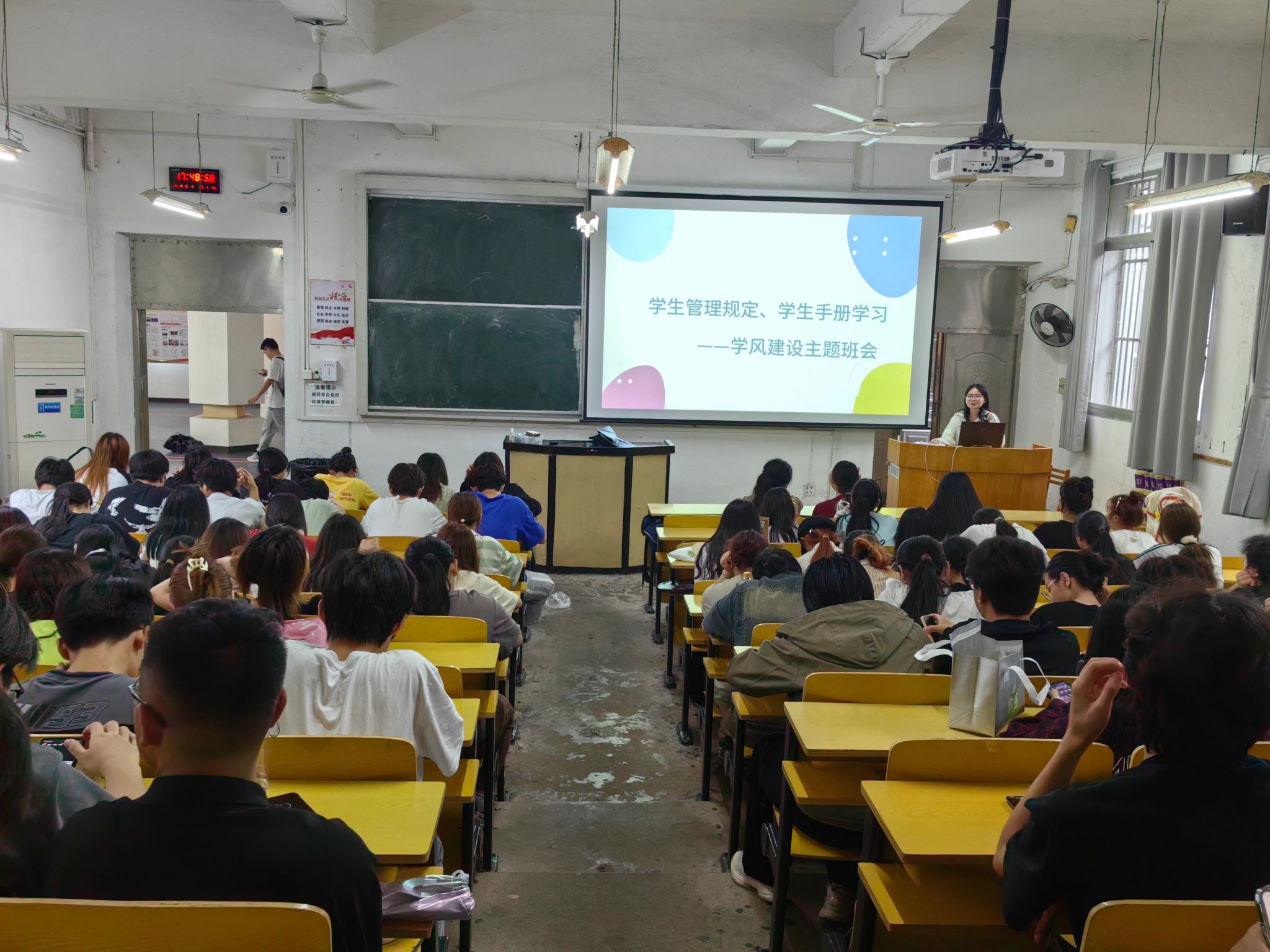 本网讯:4月25日下午,Beat365官方网站23级新生班级在红旗校区教学楼举办了一场以学风建设及形势与政策为主题的教育活动。此次活动由王奕婷老师主持,旨在提升学生的学术素养和对国家形势政策的深刻理解。