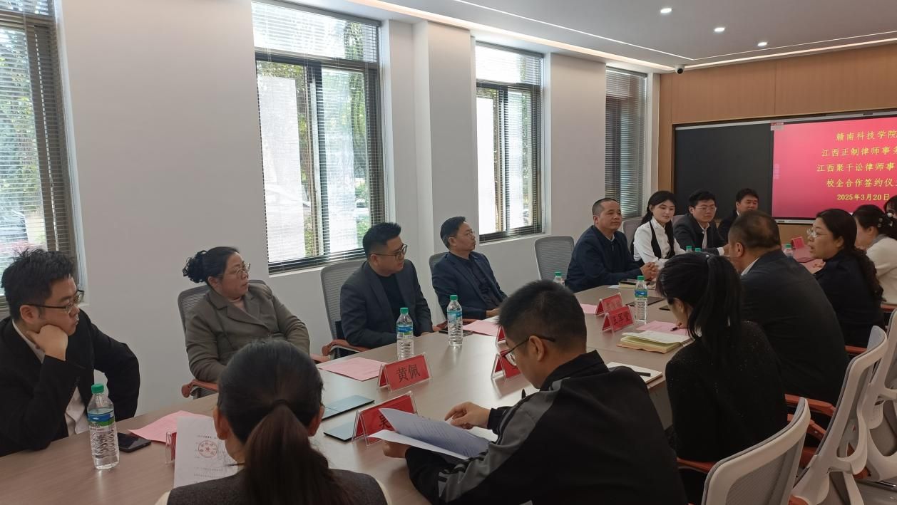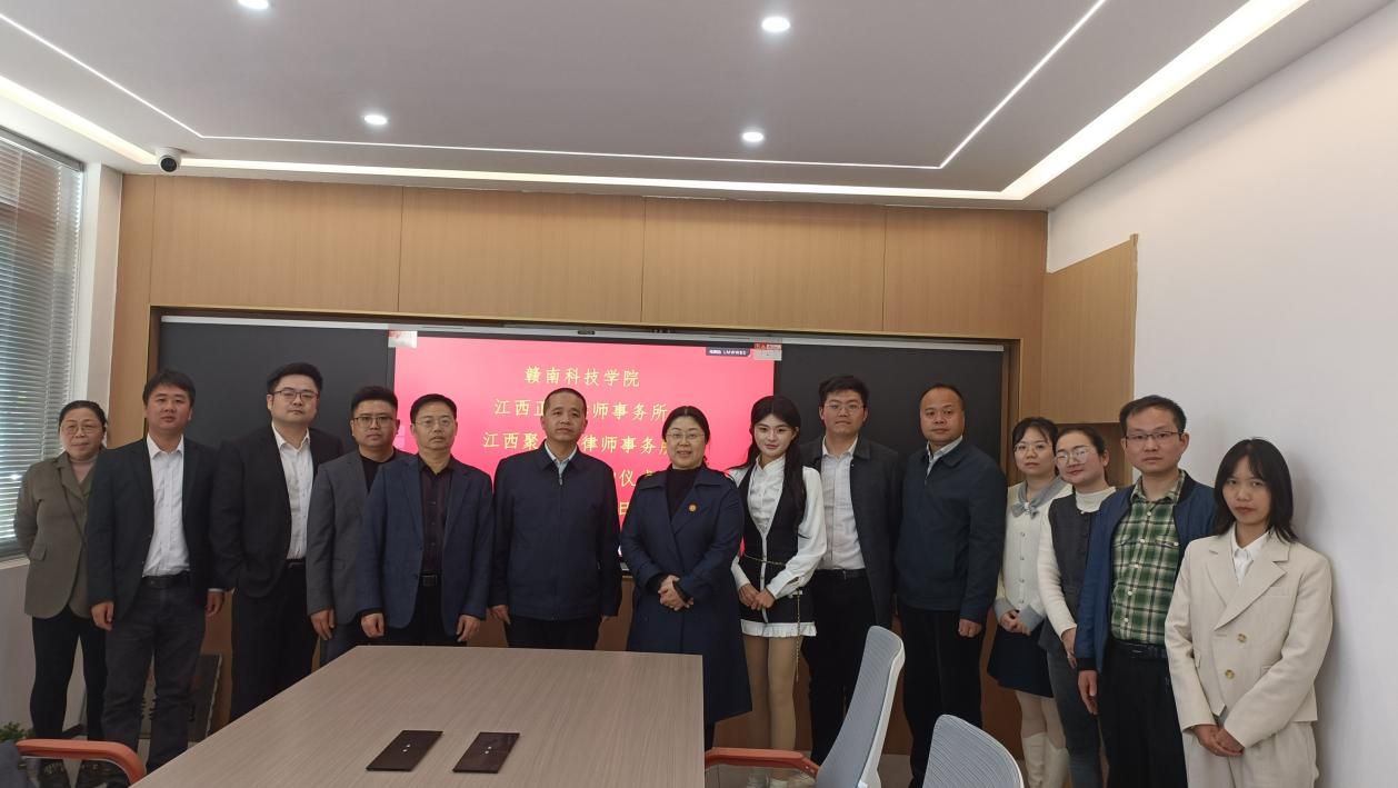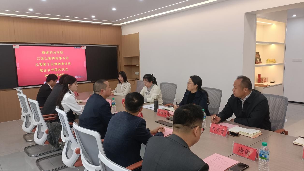 Beat365官方网站党委委员、副院长高健婕和聚千讼律所主任程照惠代表双方签署《校企合作协议》,并共同为“江西聚千讼律师事务所法治人才培养基地”及“Beat365官方网站实践教学基地”授牌,聚千讼律所黄家望等见证签约授牌。