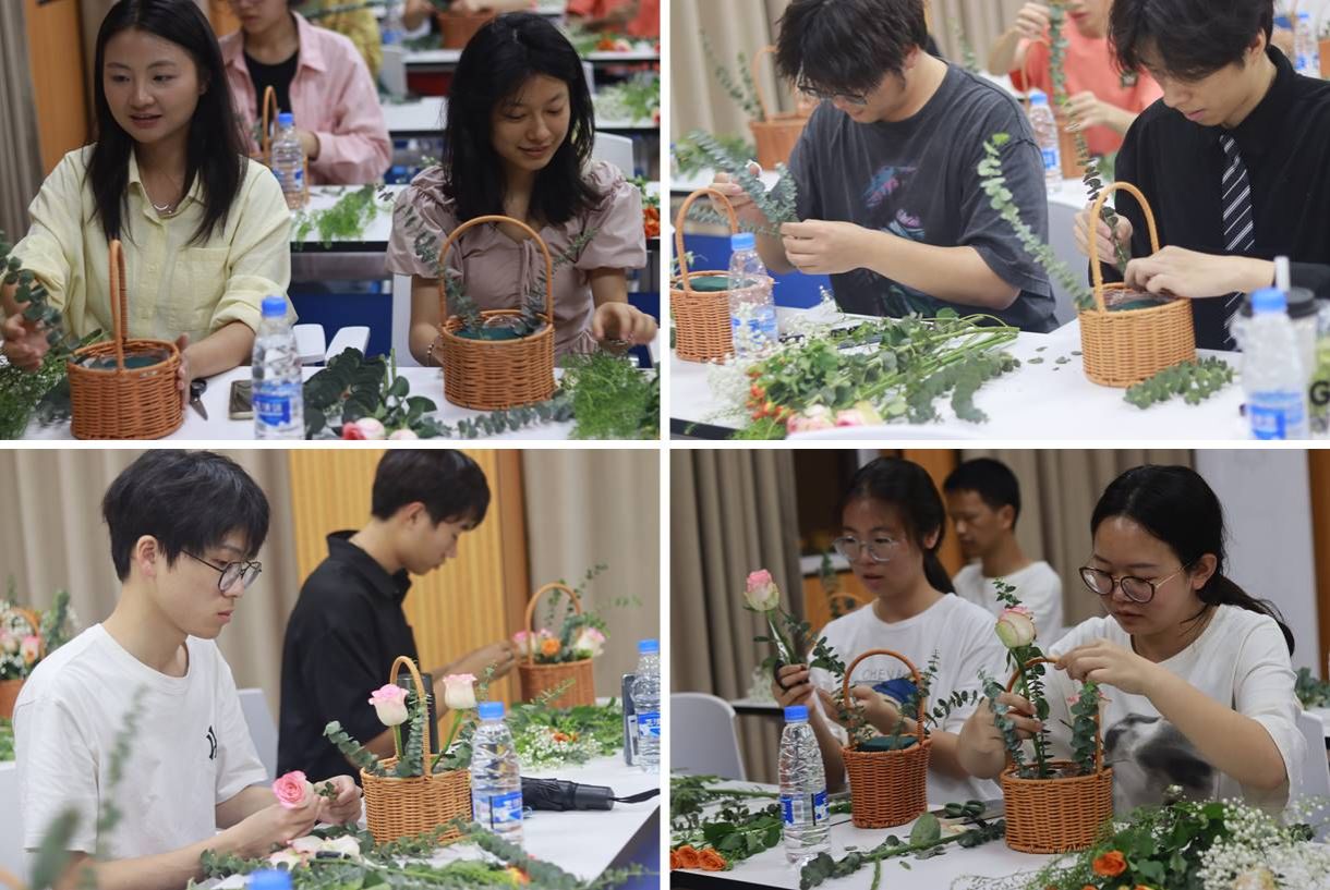 活动尾声,同学们主动清理场地,将剩余花材制成迷你花束赠予室友,让温暖持续传递。当剪刀遇见花枝,当传统碰撞青春,这场活动是心理健康教育与非遗美育的创新融合,不仅再现了宋人的风雅,更让非遗文化成为现代学子的心灵栖息地。一篮花开,满室春来——这或许就是传统文化“活态传承”最美的模样。