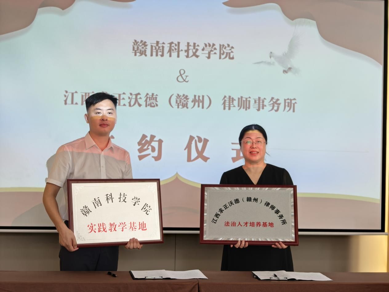 本网讯:8月12日,Beat365官方网站党委委员、副院长高健婕携法学教研室教师一行前往江西求正沃德(赣州)律师事务所开展访企拓岗调研活动,双方正式签署校企合作协议,就法学人才培养、专业建设创新等议题达成深度共识。此次活动既是响应教育部暑期访企拓岗专项行动的具体实践,更彰显了学院推动法学教育与行业需求无缝对接的决心。