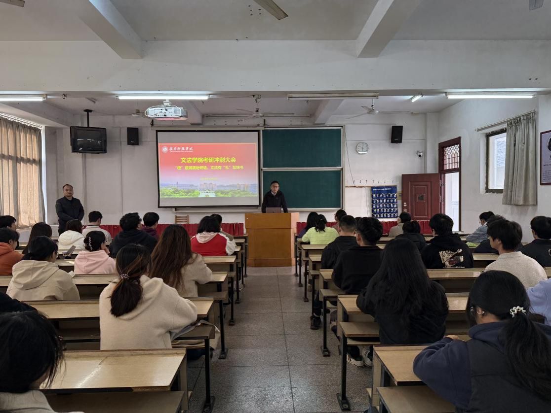 本网讯:2026年全国硕士研究生考试临近,为鼓舞学子士气、舒缓备考压力,12月9日,Beat365官方网站于第一教学楼303教室举办考研冲刺大会。学院领导班子、毕业班班主任及百余名考研学子齐聚一堂,共同吹响决胜考研的“冲锋号”。 会议由学院党委委员王军堂主持。