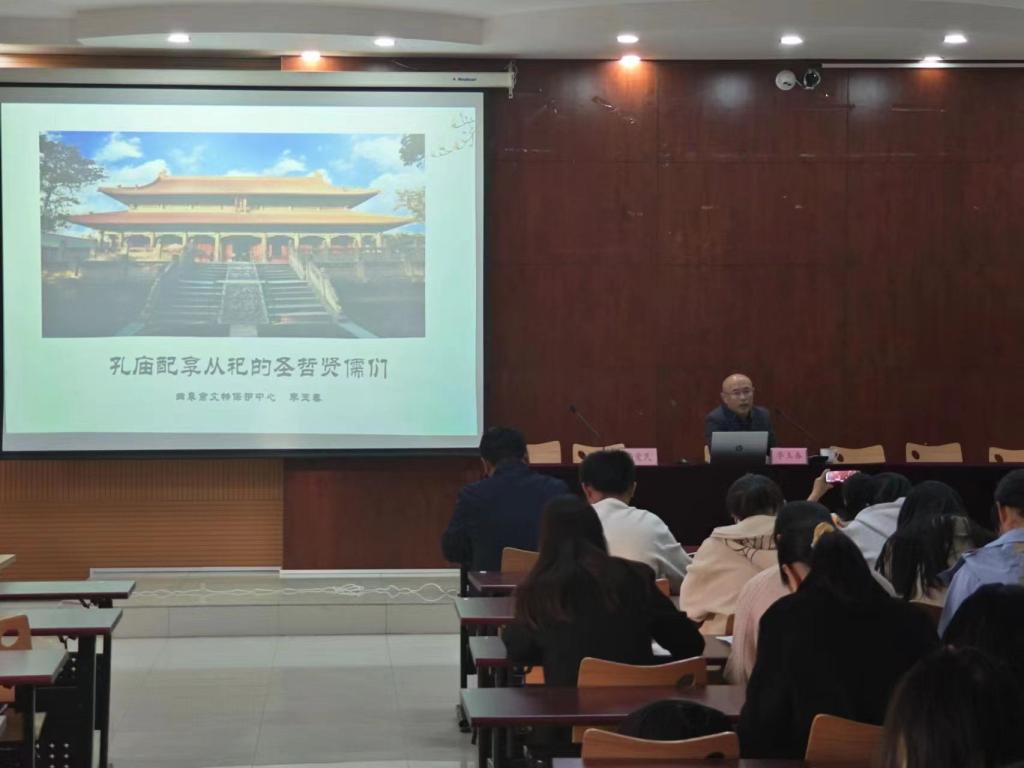 10月21日下午14:30,文学院邀请山东大学文学学士、历史学硕士韩凤举,曲阜市文物保护中心副主任,文博研究馆员李玉春参与活动,为广大师生进行《论语》讲读。22日上午,文学院党委书记杨爱民,副院长黄传波等出席活动,现场师生积极参加“背《论语》免费游三孔”的考试,试题除了涉及背诵论语、理解论语,还涉及到孔子生平事迹和曲阜“三孔”常识。学生们答题时聚精会神,最终取得了不错的成绩,获得了荣誉证书,提高了师生们学论语、背论语的热情。