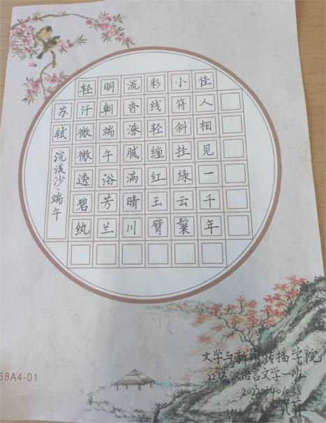 为传承端午文化,弘扬中华民族优良传统,引导广大青年感受传统文化魅力,增强学生对民族文化的认同感和自豪感,文学与新闻传播学院于6月22日举办“粽情端午 古韵流长”端午节书法比赛,“以笔绘端午 以情系万家”手抄报比赛,“手绘彩蛋,情浓端午”彩蛋绘制,“诗意端午 绳编五色”五彩绳编制四个系列活动,文学与新闻传播学院全体学生积极参与本次系列活动。