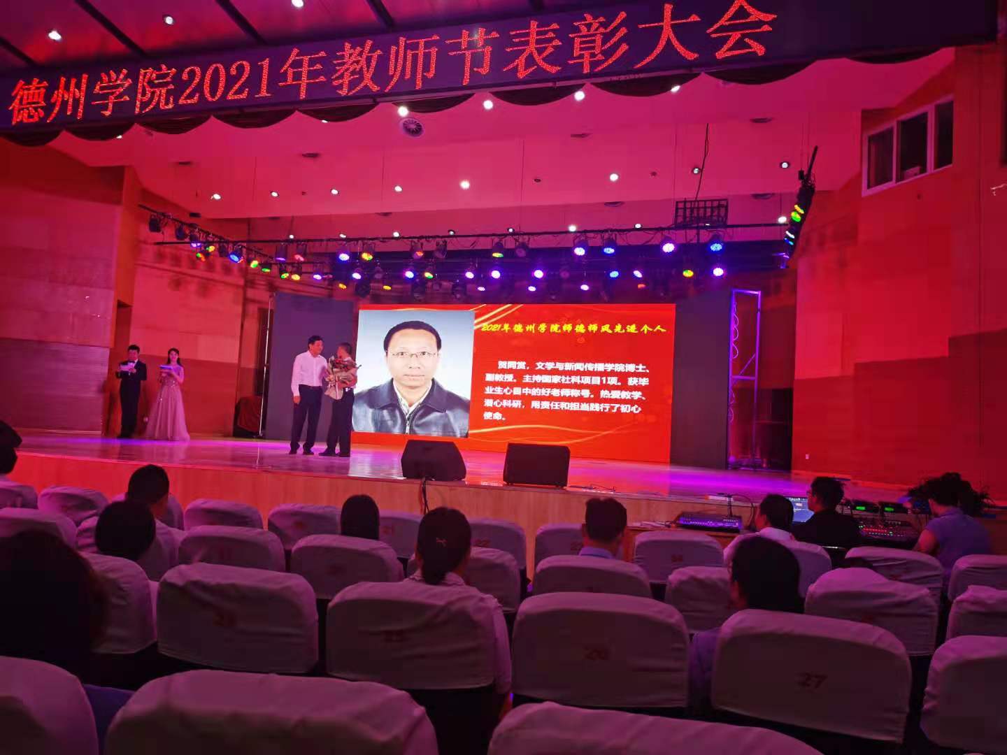 9日上午,在第37个教师节来临之际,学校在音乐厅召开2021年教师节表彰大会,表彰2021年kaiyun开云官方师德师风先进个人、优秀教师和优秀教育工作者。kaiyun官网两位教师获学校表彰,贺同赏老师获得2021年kaiyun开云官方师德师风先进个人称号,俞泽峰老师获得2021年kaiyun开云官方优秀教师称号。他们表示教师不仅传道授业解惑,更应致力于学生品格、品行、品位塑造,要以高尚的职业道德铸魂育人,以深厚的专业素养诲人不倦,努力向着“四有”好老师这个目标奋进。kaiyun官网新入职教师庄严宣誓,表达要忠诚党的教育事业,努力做一名大学好老师。
